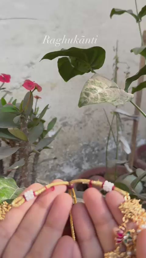 Radiating spiritual elegance and regal charm, the Devi lotus Choker is an exquisite temple-style necklace that captures the essence of divine femininity. Ideal for weddings, festivals, and classical performances, this piece is a tribute to traditional South Indian heritage.